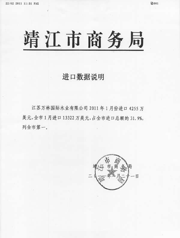 2011年1月進(jìn)口總額列全市第一