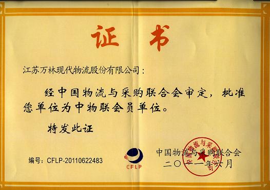 2011年6月江蘇萬(wàn)林現代物流股份有限公司經(jīng)中國物流與采購聯(lián)合會(huì )審定,批準成為中國物流與采購聯(lián)合會(huì )會(huì )員單位。