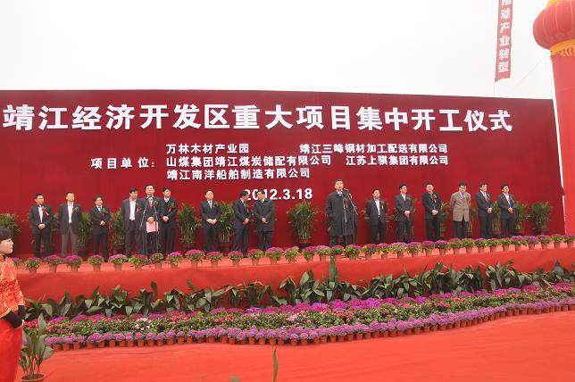中國江蘇網(wǎng)319日訊 昨天上午,靖江經(jīng)濟開(kāi)發(fā)區舉行重大項目集中開(kāi)工儀式,掀起開(kāi)發(fā)區新一輪項目建設的熱潮。這次項目開(kāi)工將進(jìn)一步優(yōu)化我市沿江產(chǎn)業(yè)結構、加快產(chǎn)業(yè)轉型升級步伐,為打造國際性制造業(yè)基地、現代物流基地和資源性?xún)|噸大港產(chǎn)生積極影響,也將為我市率先基本實(shí)現現代化目標增添新的動(dòng)力。市領(lǐng)導陳明冠、趙葉、錢(qián)進(jìn)華、蘇增耀、尤紅、王金國等出席開(kāi)工典禮并為項目培土奠基。市委副書(shū)記、市長(cháng)趙葉主持開(kāi)工儀式。