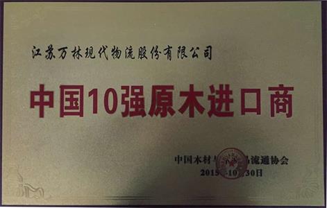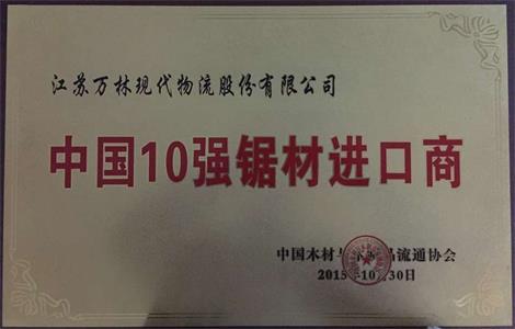 江蘇萬(wàn)林現代物流股份有限公司榮獲“2015年中國10強原木進(jìn)口商“與“2015年中國10強鋸材進(jìn)口商“