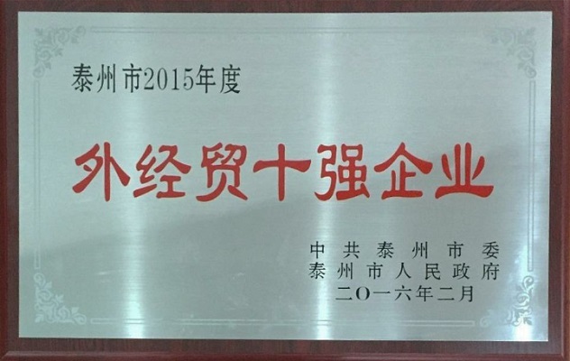 萬(wàn)林股份榮獲泰州2015年度外經(jīng)貿十強企業(yè)